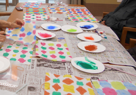 うちわ作りレクリエーション特別養護老人ホーム練馬高松園・第2練馬高松園・第3練馬高松園。