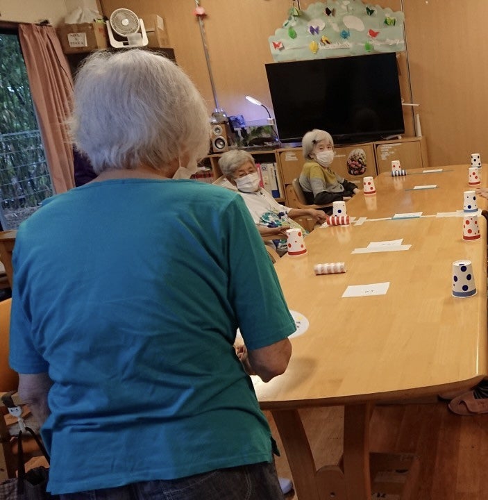 紙コップとうちわを使ったレクリエーション活動🎨。