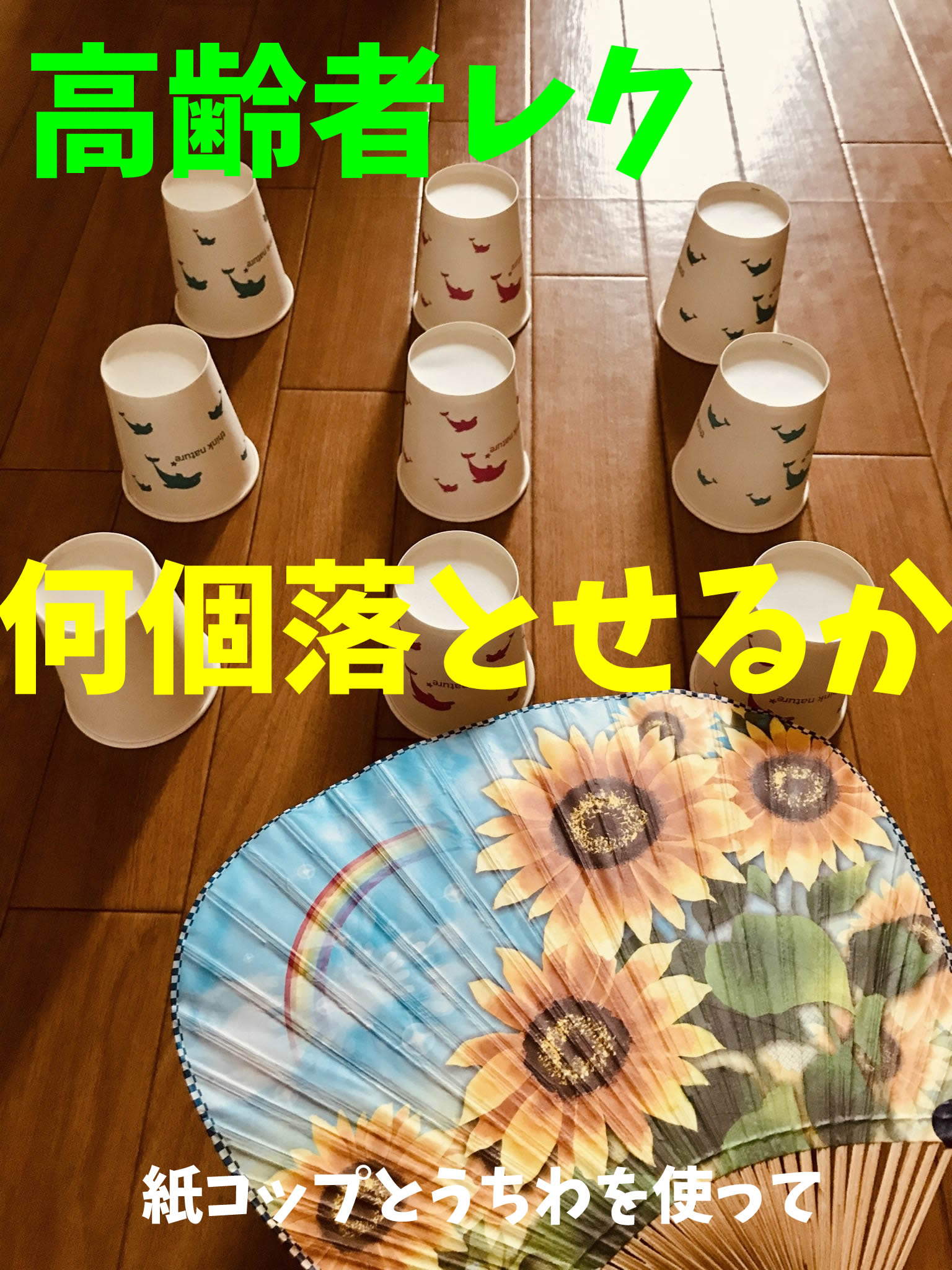 お家でできる 介護レクリエーション 紙コップとうちわを使って『何個落とせるかゲーム』オンラインレクリエーション介護士のchibiike。