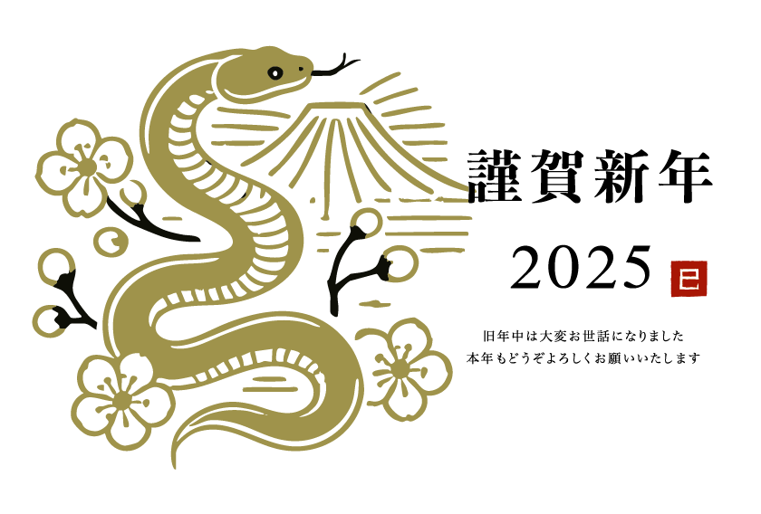 2025年の干支「巳」の年賀状イラスト 縁起の良い蛇 – 無料ダウンロードイラストダウンロード。