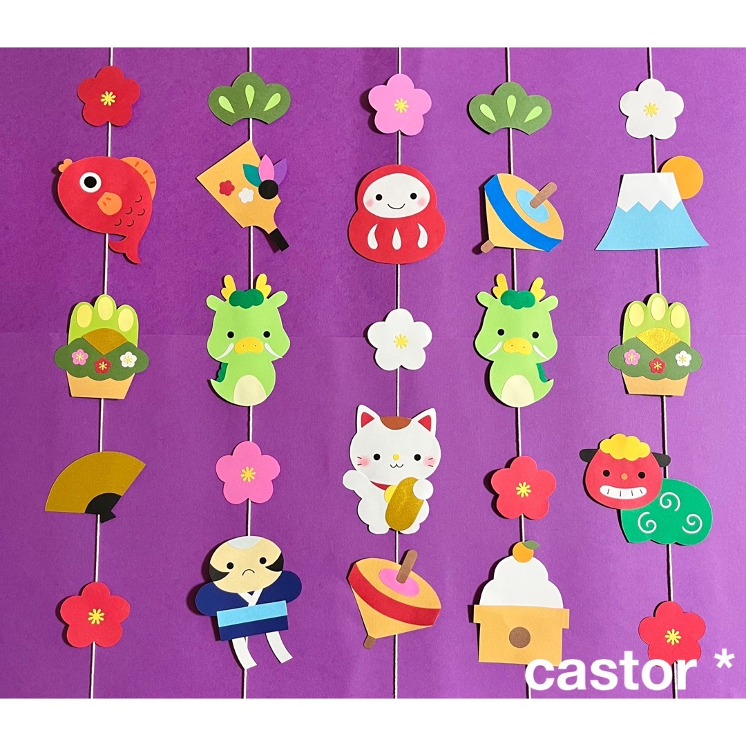 お正月の壁面飾り②ガーランド 吊るし飾り 画用紙の通販 by castor *ラクマ。