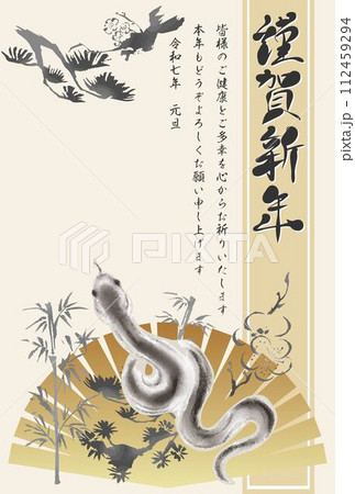 2025年 巳年 年賀状用はがきテンプレート 干支のヘビの筆手書きイラスト269674343- イメージマート。