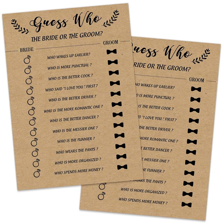 ブライダルシャワーゲーム Guess Who the Bride or Groom ゲームカード 結婚式用 30枚ウェディングブライダルシャワーパーティーゲームカード 花嫁と花婿を知っているカップル向けのアイデア 楽しいアクティビティカードゲーム。