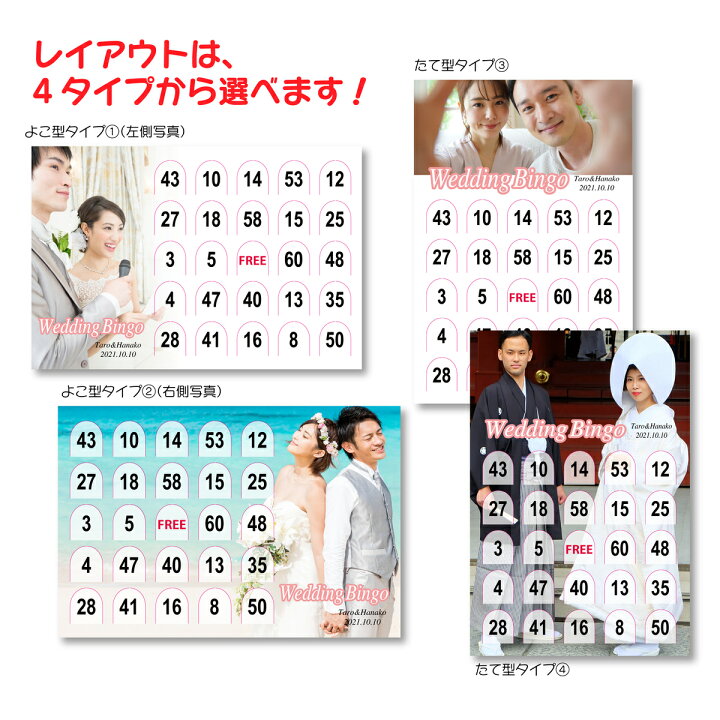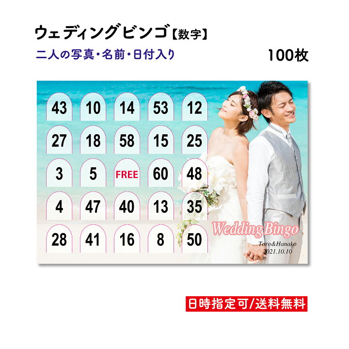 楽天市場 ビンゴ ウェディング bingo ビンゴカード 結婚式数字100枚 二次会 披露宴 余興 wedding 幹事 オリジナル 写真入りLINEで簡単入稿5×5の25マス ビンゴゲーム 新郎 新婦 はがきサイズ 文字ビンゴ ランダム配置 : omonogawa 楽天市場店。