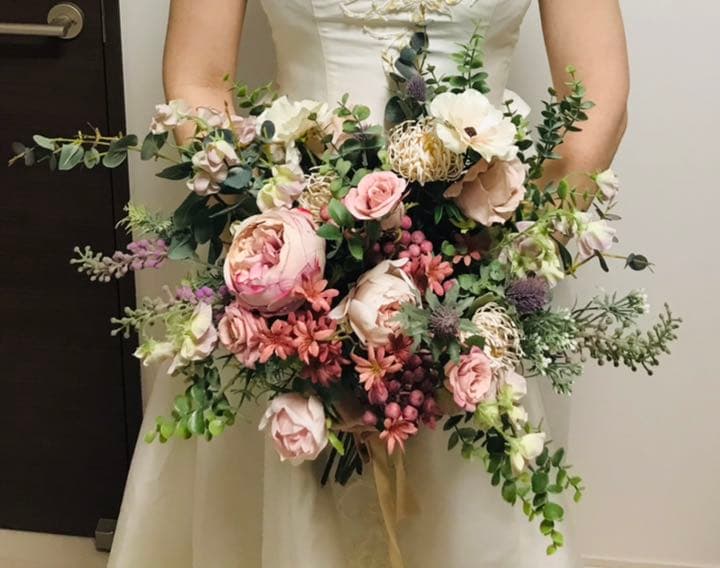 インスタ人気デザイナーのアーティフィシャルフラワーウェディングブーケ 結婚式・ウェディングにおすすめ!記念日。