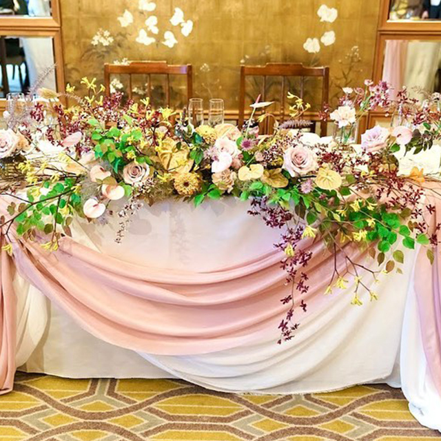 結婚式 高砂席 布 会場装花実例集♪公式 南蔵王・聖。