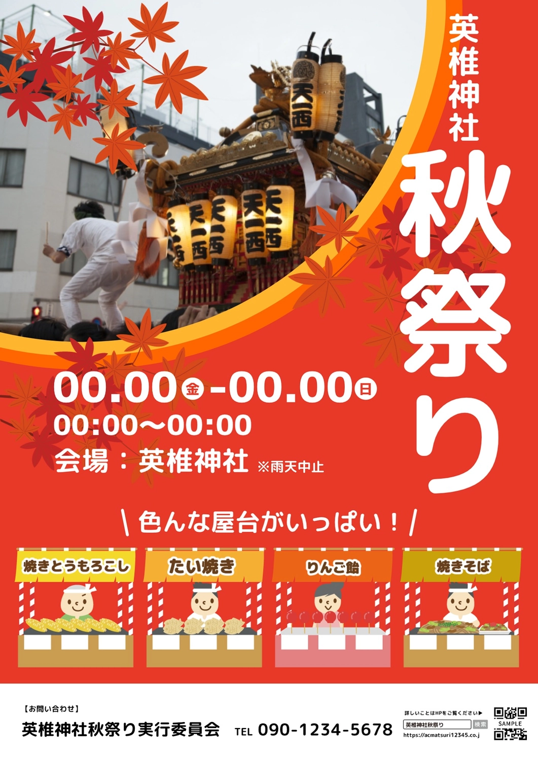 秋祭りチラシ4 縦 テンプレート無料イラスト素材素材ラボ。