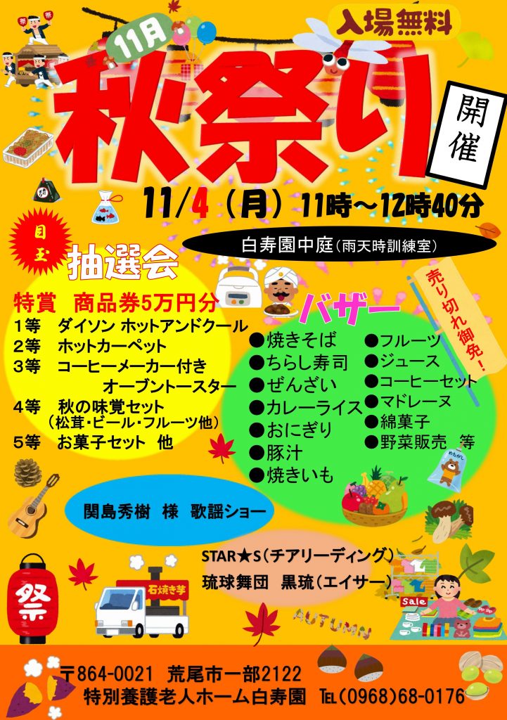 R1.10月秋祭りチラシ高齢者支援センターやまびこ。