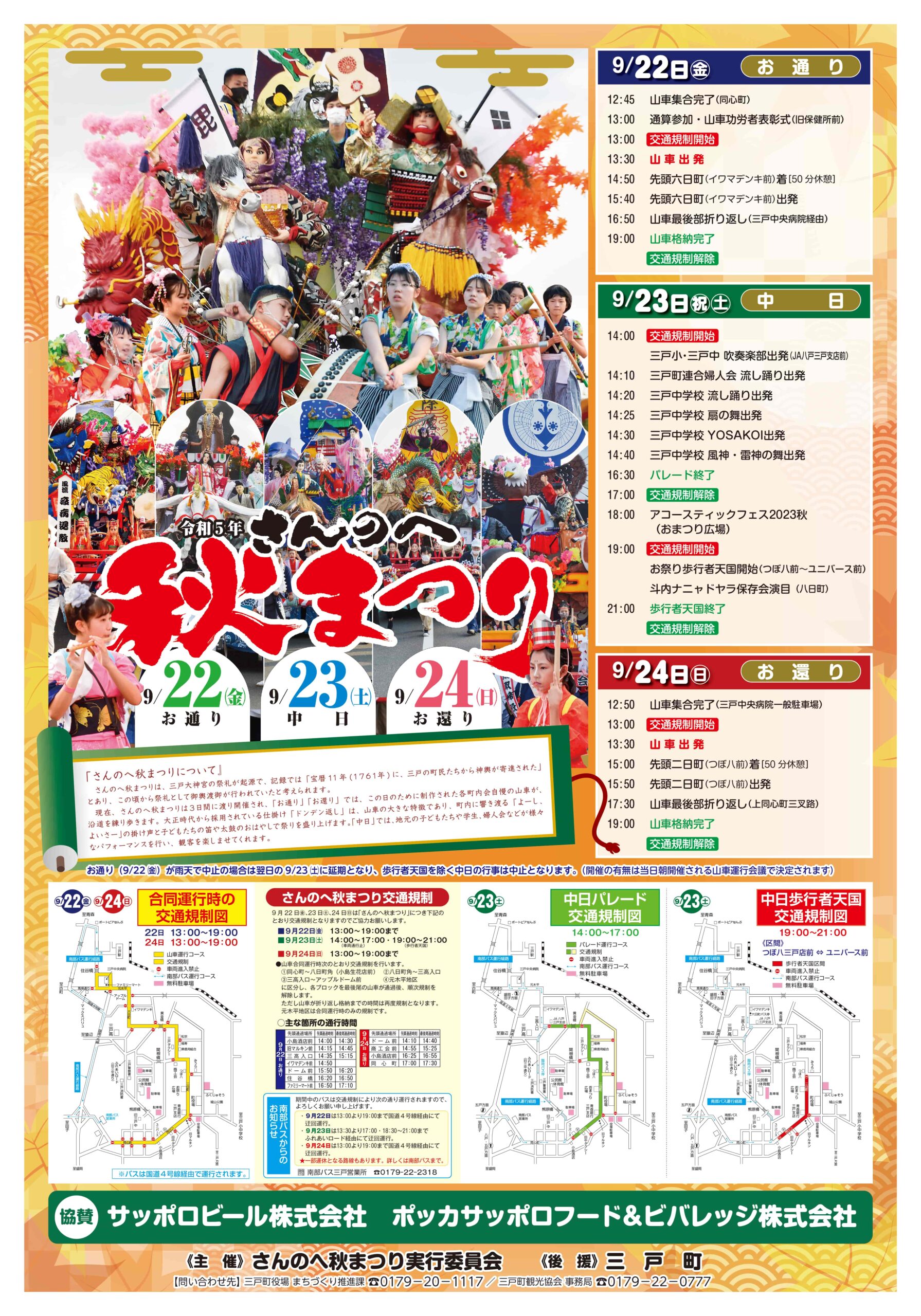 さんのへ秋まつりチラシが出来ました。三戸町観光協会。