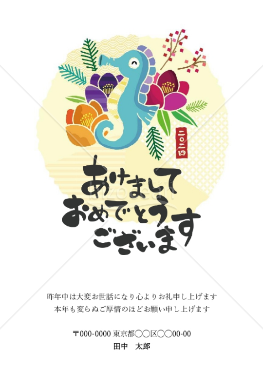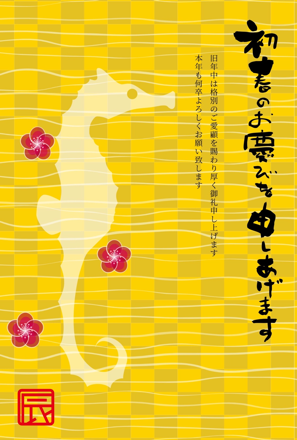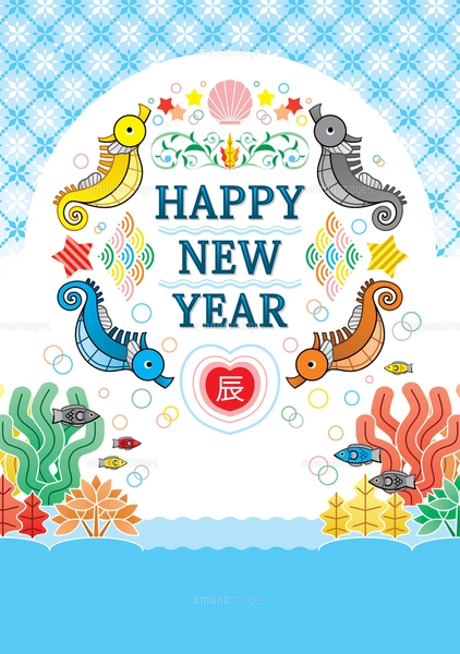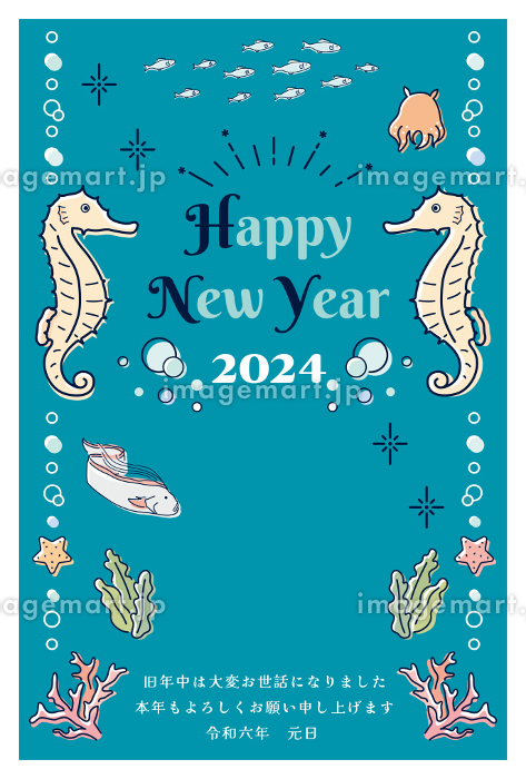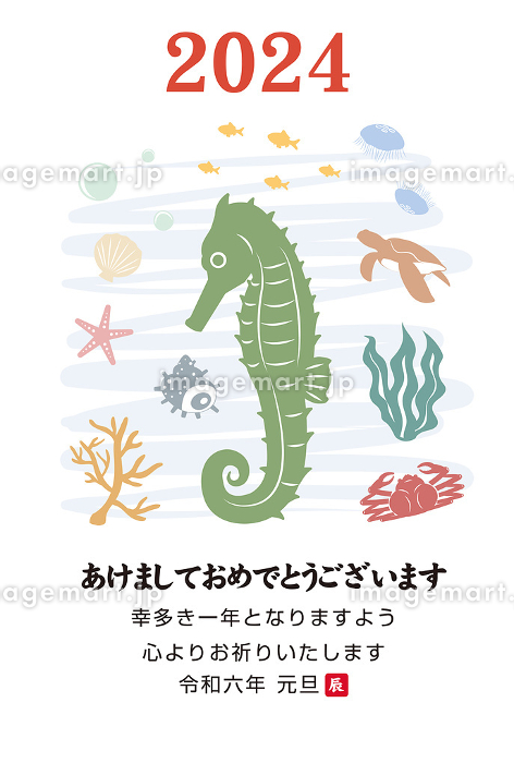 辰年 年賀状テンプレート タツノオトシゴと海のお正月のイラスト素材107624587- PIXTA。