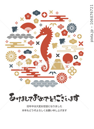 辰年の年賀状テンプレート ベクター 和 円形配置 タツノオトシゴ 年賀2024のイラスト素材106876721- PIXTA。