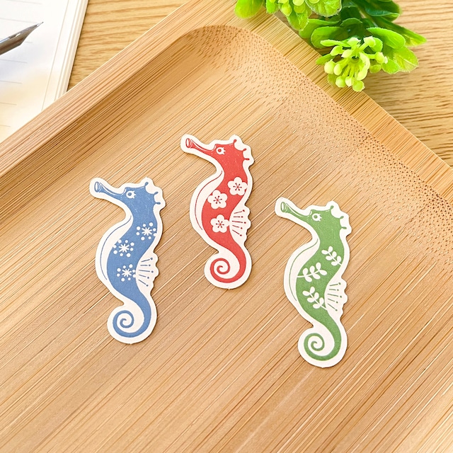 タツノオトシゴのフレークシール 24枚入 手帳デコ ラッピング 年賀状シール 干支 辰年 動物モチーフ かわいい 魚PiN。