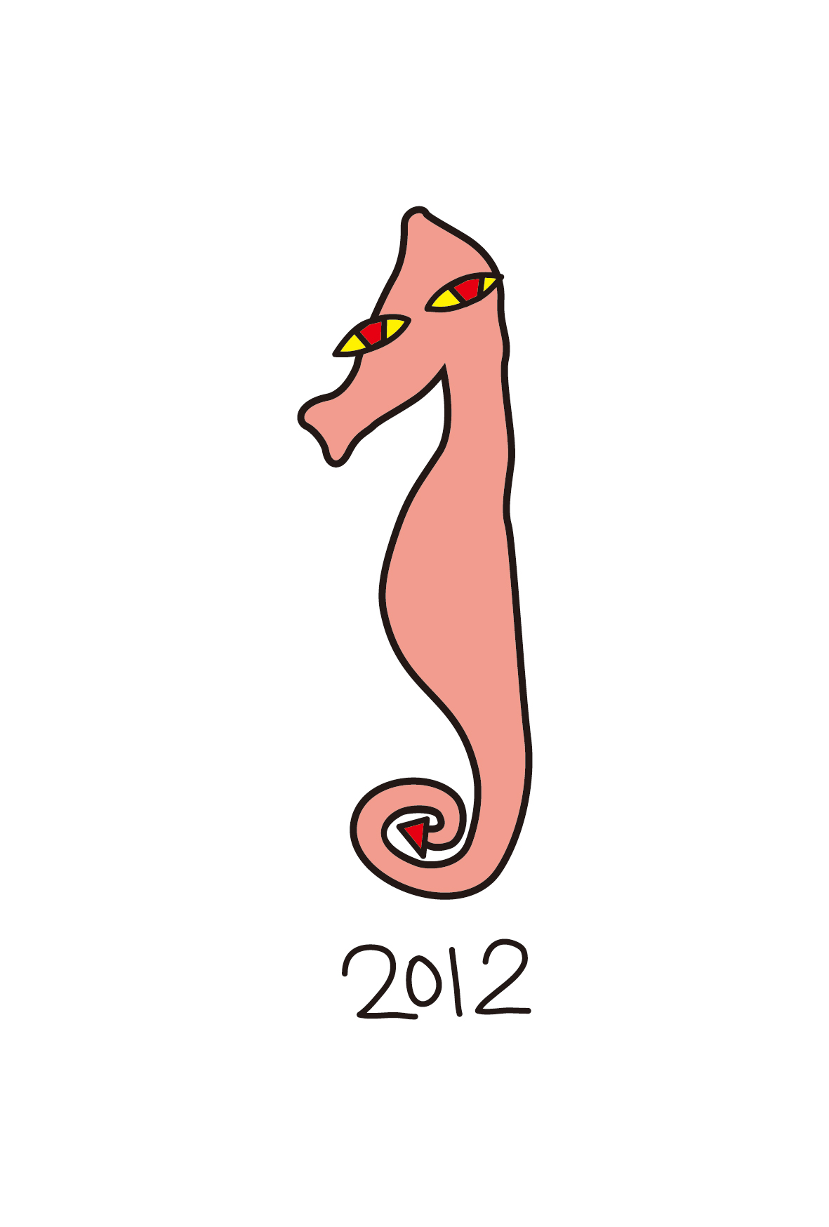 辰年 タツノオトシゴ イラスト 年賀状 Happy New Year Year of the Sea horseイラスト、イメージ作成足跡・グラフィックデザイナー 素材屋 ひとりメーカー ひとりブランド。