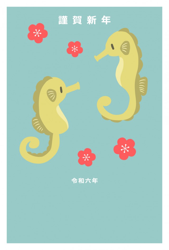 年賀状 干支 辰 タツノオトシゴの無料年賀状素材。