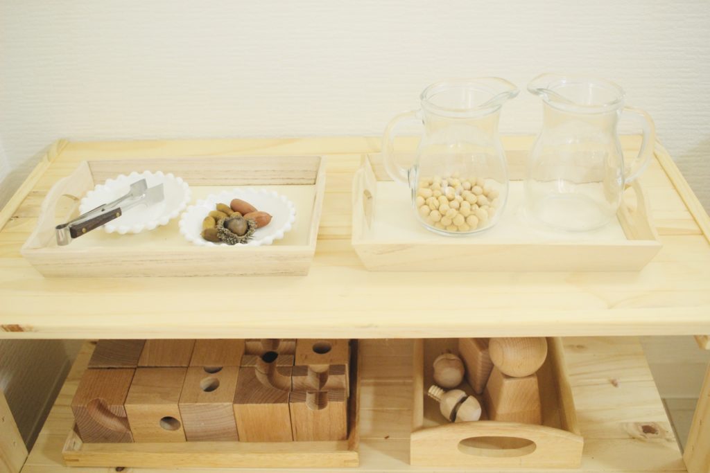 100均で発見 おうちモンテにぴったりな木製トレイの決定版!モンテッソーリ用トレイの使い勝手を本音チェック ダイソーおうちdeモンテ。