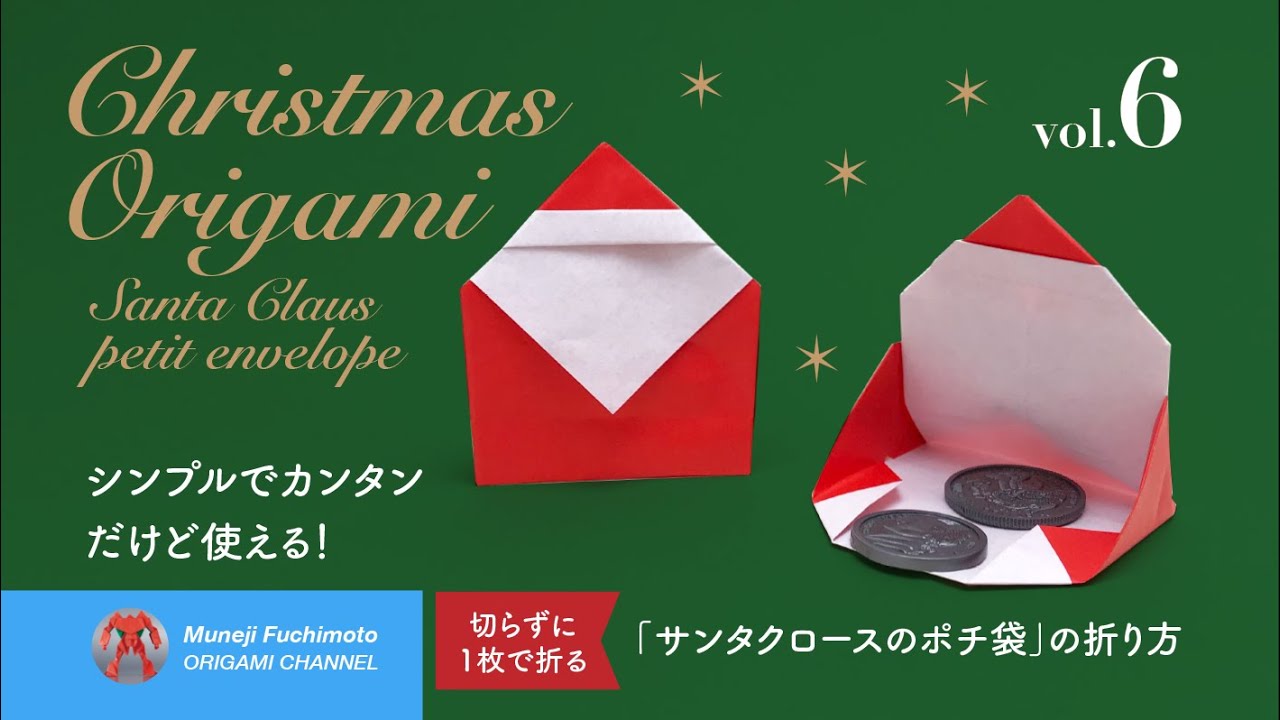 「クリスマス折り紙」サンタクロースのポチ袋の折り方 Santa Claus origami。