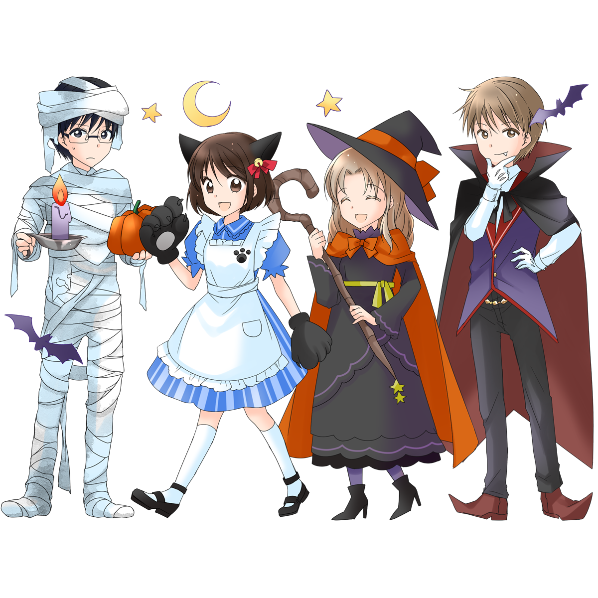 ハロウィン仮装を楽しむ子どもたちのイラスト素材 背景透過PNG- フリーかわいい- かわいい素材、ぜんぶ無料。