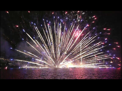 水面の上できれいに半円にひろがる「水中スターマイン」ムービー in 第21回なにわ淀川花火大会 - GIGAZINE。