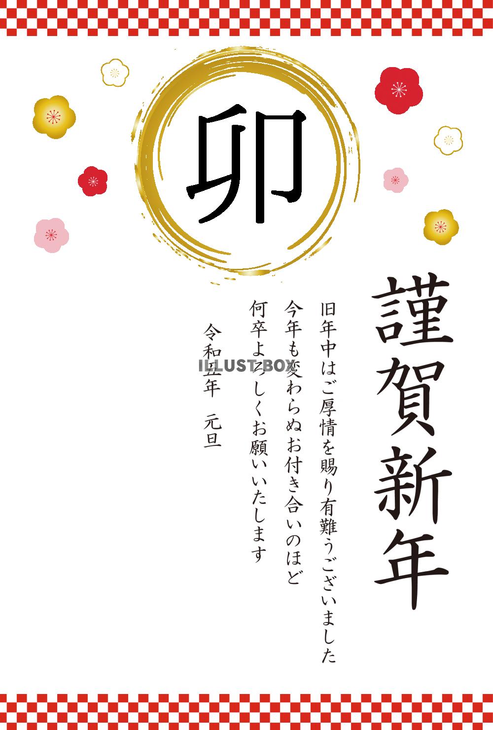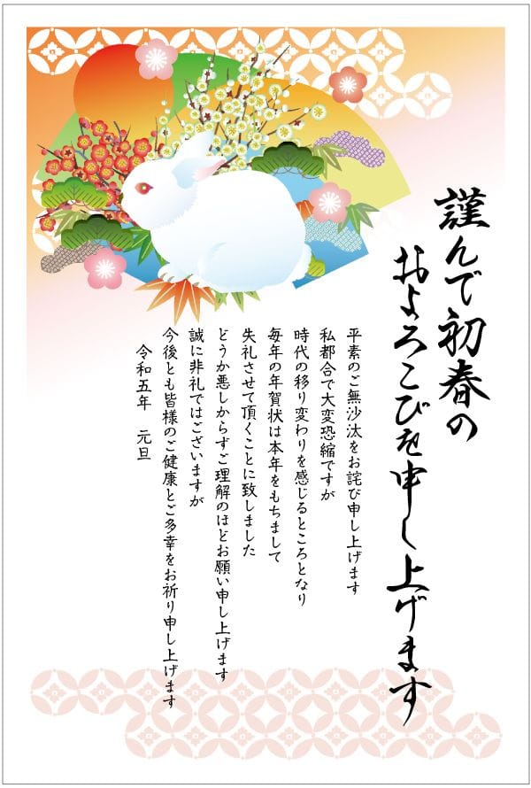 2023年卯年年賀状テンプレート 年賀状じまい文章付き 縦:イラスト無料。