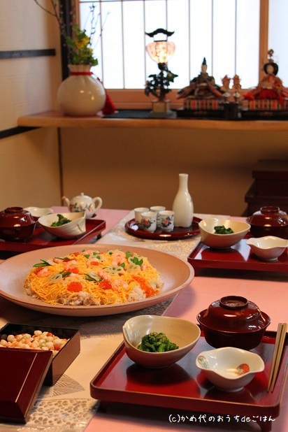 ひな祭りの献立、3種のお寿司、ちらし寿司、手まり寿司、お雛さま寿司道添明子オフィシャルブログ「あーぴんの季節の簡単ごはん」Powered byAmeba。