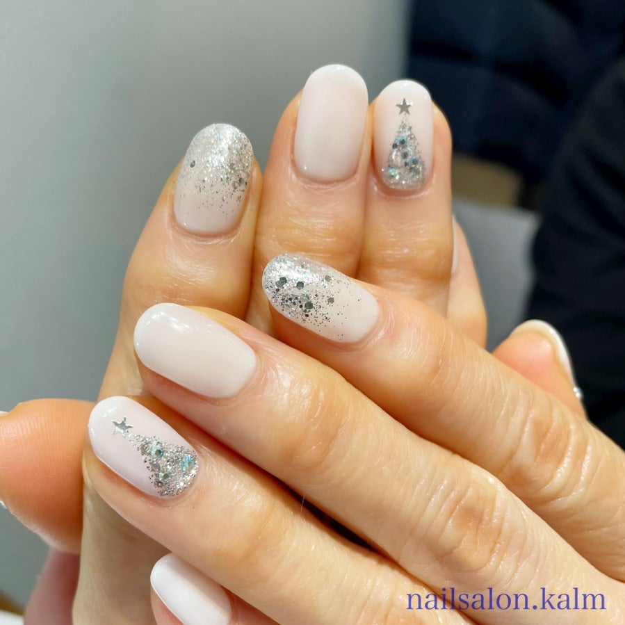 冬 クリスマス オフィス シンプル キラキラ - nailsalon flowerのネイルデザイン No.8477974 ネイルブック。