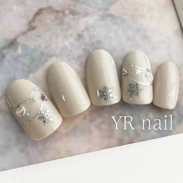 冬 クリスマス シンプル ビジュー ワンカラー - plussmileのネイルデザイン No.6861891 ネイルブック。