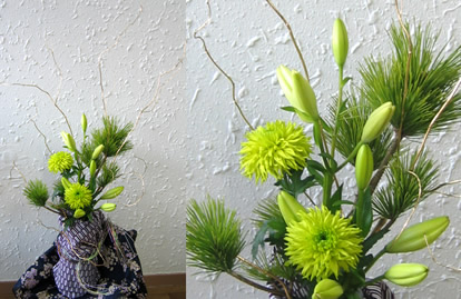 お正月のいけばな ☆ 生徒さまのレッスン作品から - 花と実と魔女と:楽天ブログ。