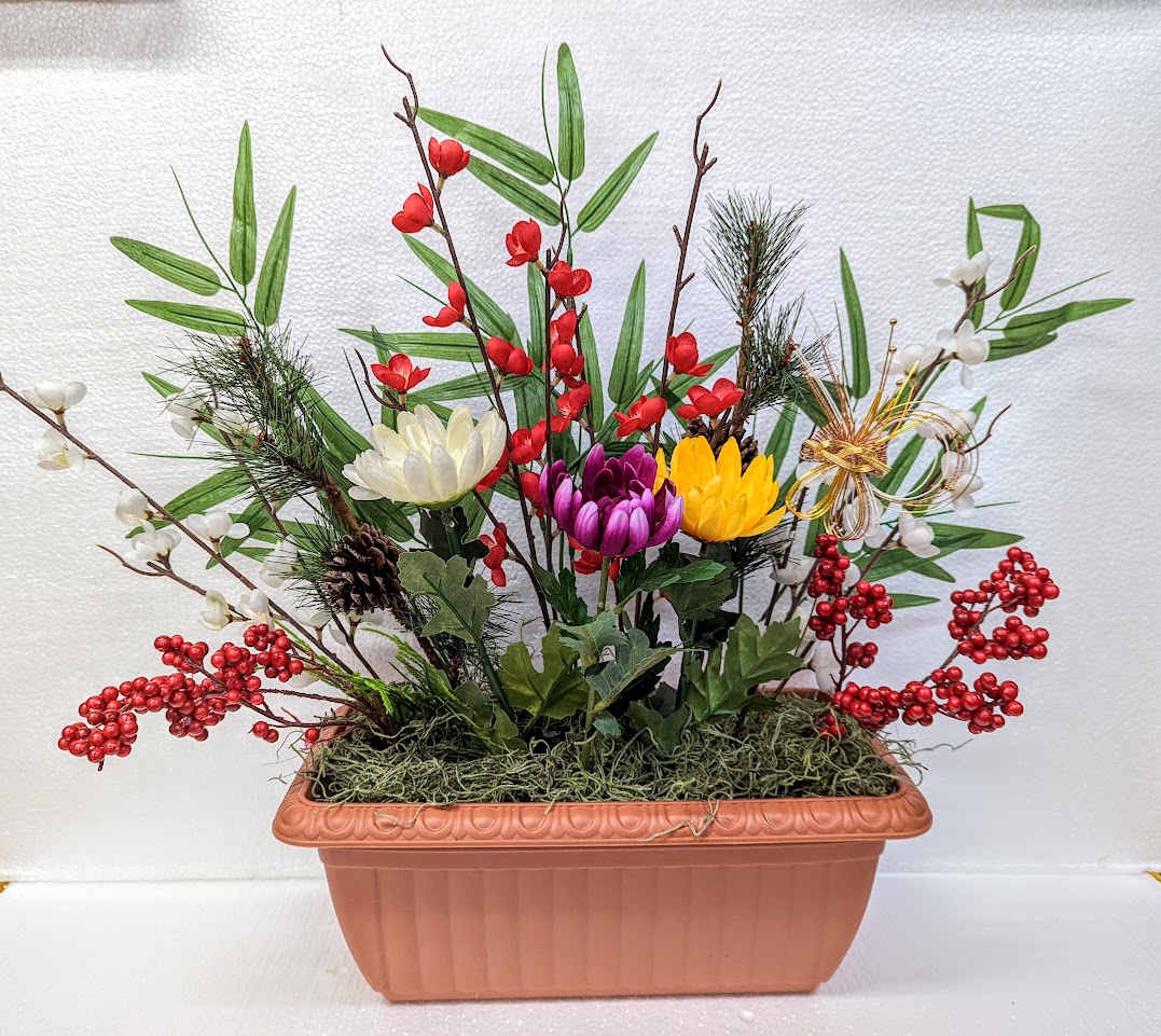 お正月のフラワーアレンジメントのアイデアCraftie Style。
