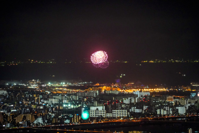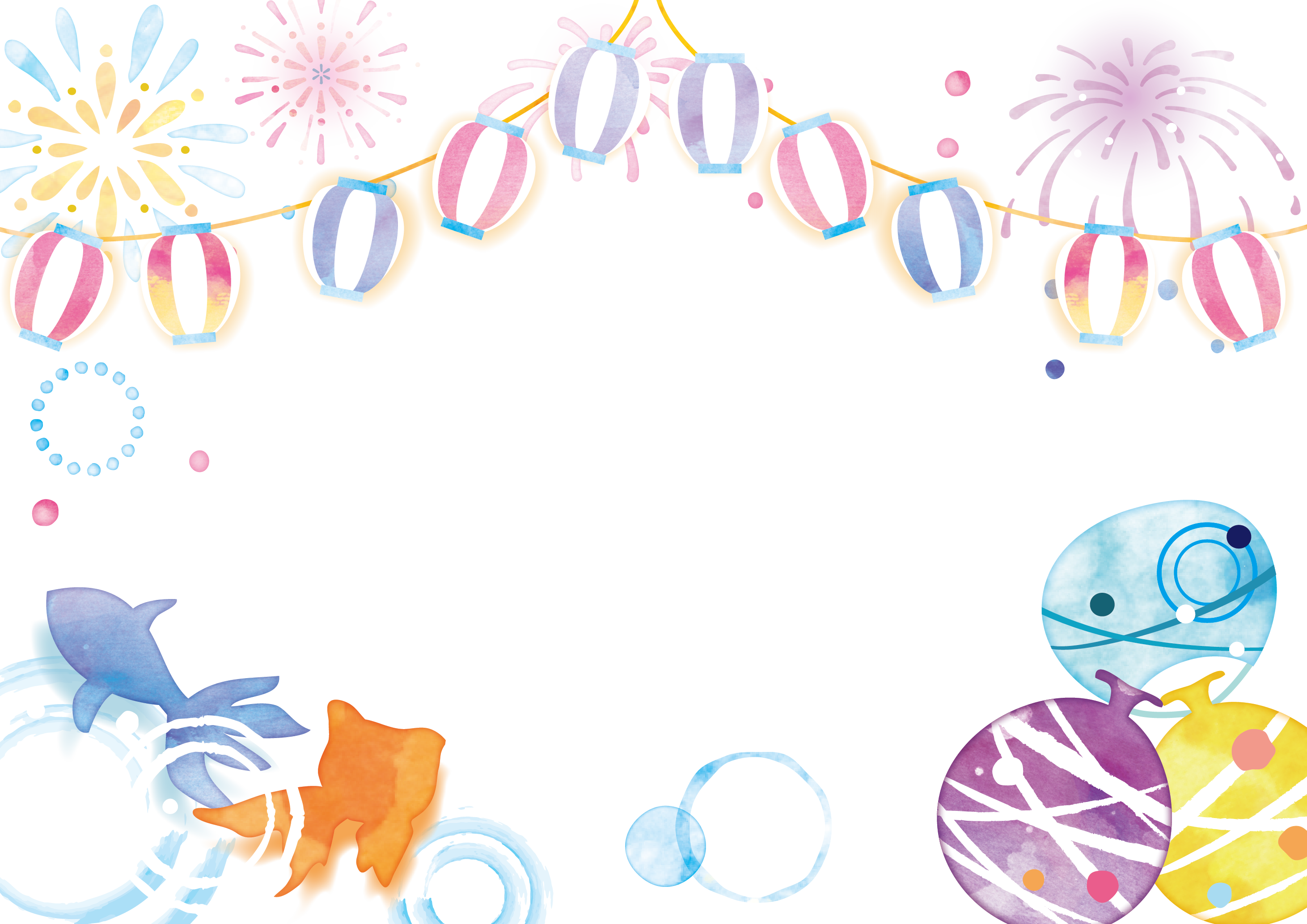 お祭りの紅白幕と提灯と花火のフレーム・枠イラストフリー素材 イラストミント。