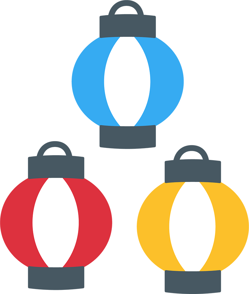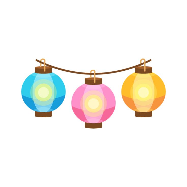 シンプルなカラフル提灯セット 夏祭り :イラスト無料。