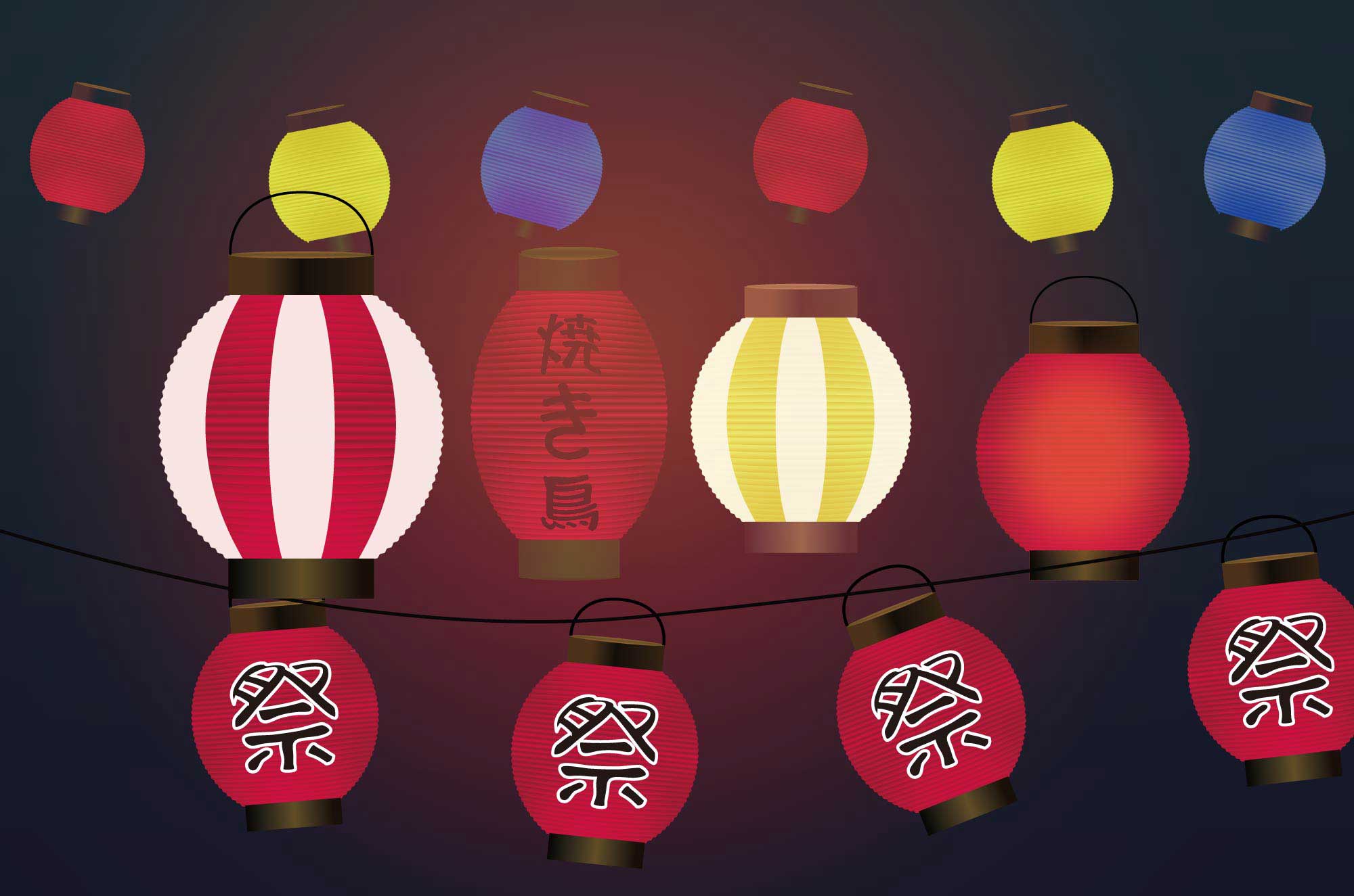 提灯・ちょうちんイラスト素材・夏祭り – フリーイラスト素材集・かわいいみやストック・西宮市のイラストレーター・商用利用可。