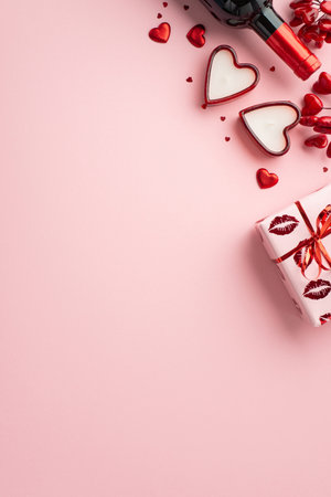 バレンタインデーの背景にチョコレート、心、赤いチューリップの写真素材・画像素材 Image 49202146。