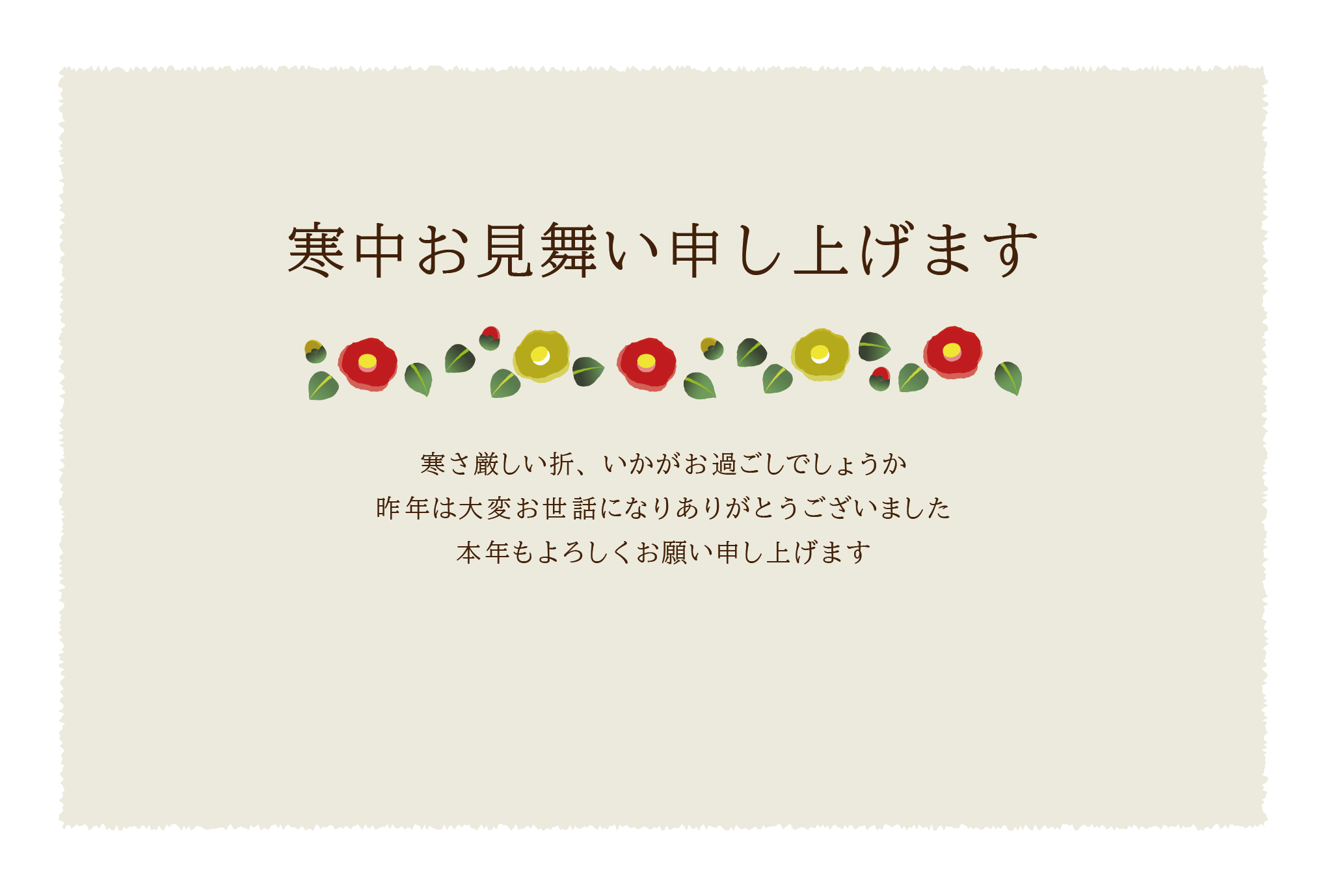 文字無し・寒椿の寒中見舞いテンプレートイラスト01イラスト無料・かわいいテンプレート。