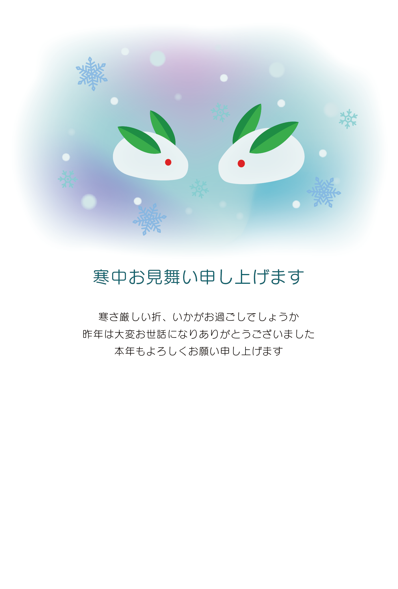 かわいい雪うさぎの寒中見舞いはがき2026年 令和8年無料の年賀状デザインテンプレート集。