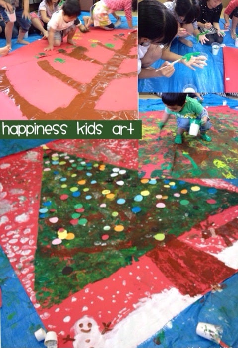 ダイナミック絵具遊びで大きなクリスマスツリー☆甲子園子ども会ハピネスキッズアート 神戸 岡本 幼児・小学生 お絵かき・造形教室。