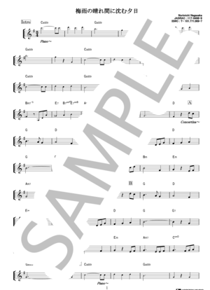 楽譜 梅雨の晴れ間に沈む夕日 メロディー譜長坂 憲道アコーディオン入門- Piascore 楽譜ストア。