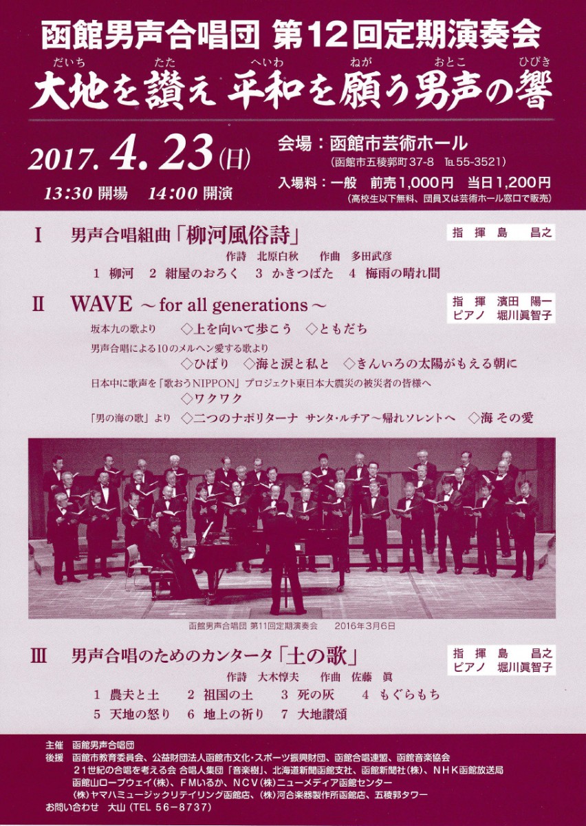 男声合唱組曲「柳河風俗詩」作曲:多田武彦作詩:北原白秋 : クボタホール。
