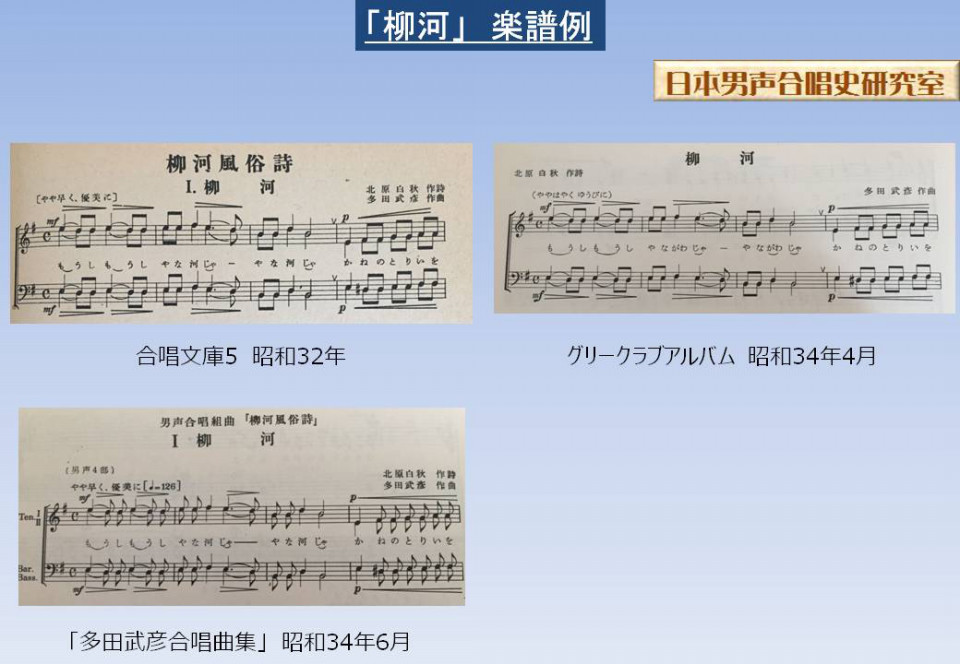グリークラブアルバムの研究 各曲編 25. 柳河日本男声合唱史研究室。