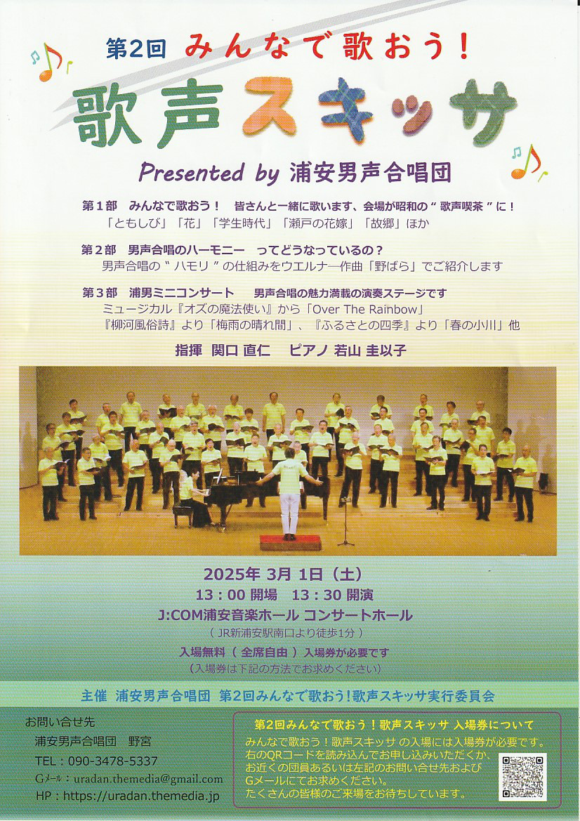 第2回 みんなで歌おう!『歌声スキッサ』開催のお知らせ浦安男声合唱団 公式サイト。