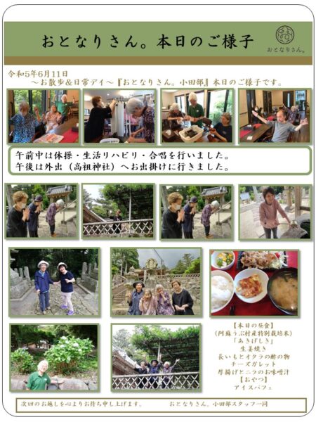 梅雨の空 みんなの声で 晴れてゆく西東京市・国分寺市・小金井市・福岡市のデイサービス おとなりさん。