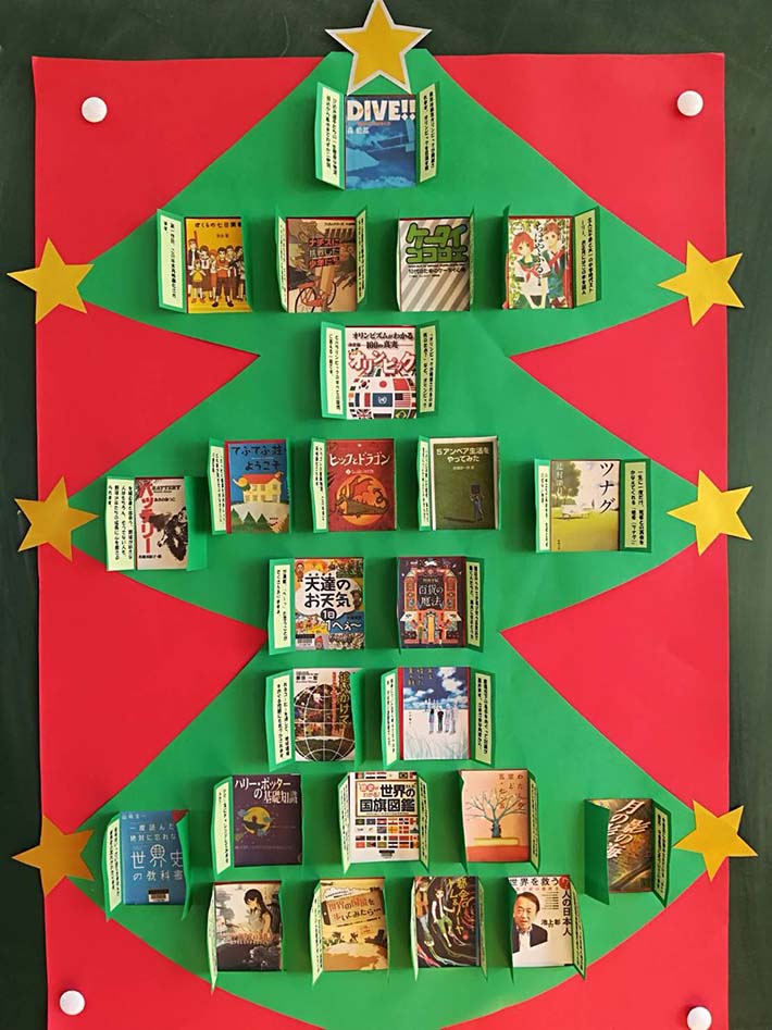図書室掲示 クリスマスバージョン 長者中ブログ。