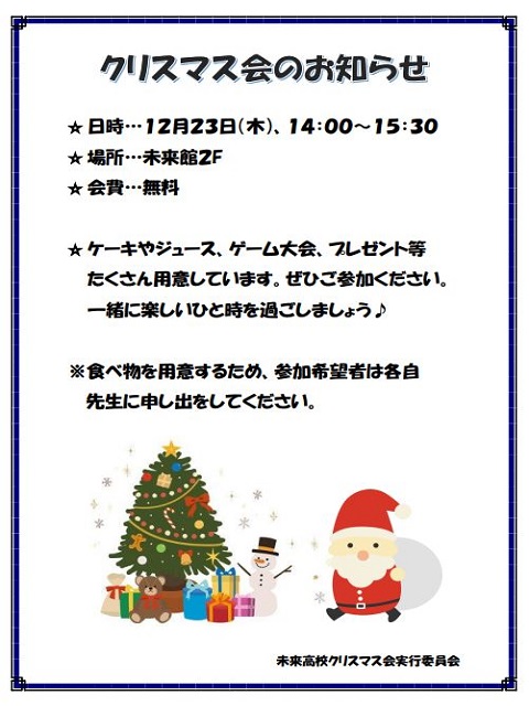 クリスマスパーティー開催! – 未来高等学校 徳島学習センタ。