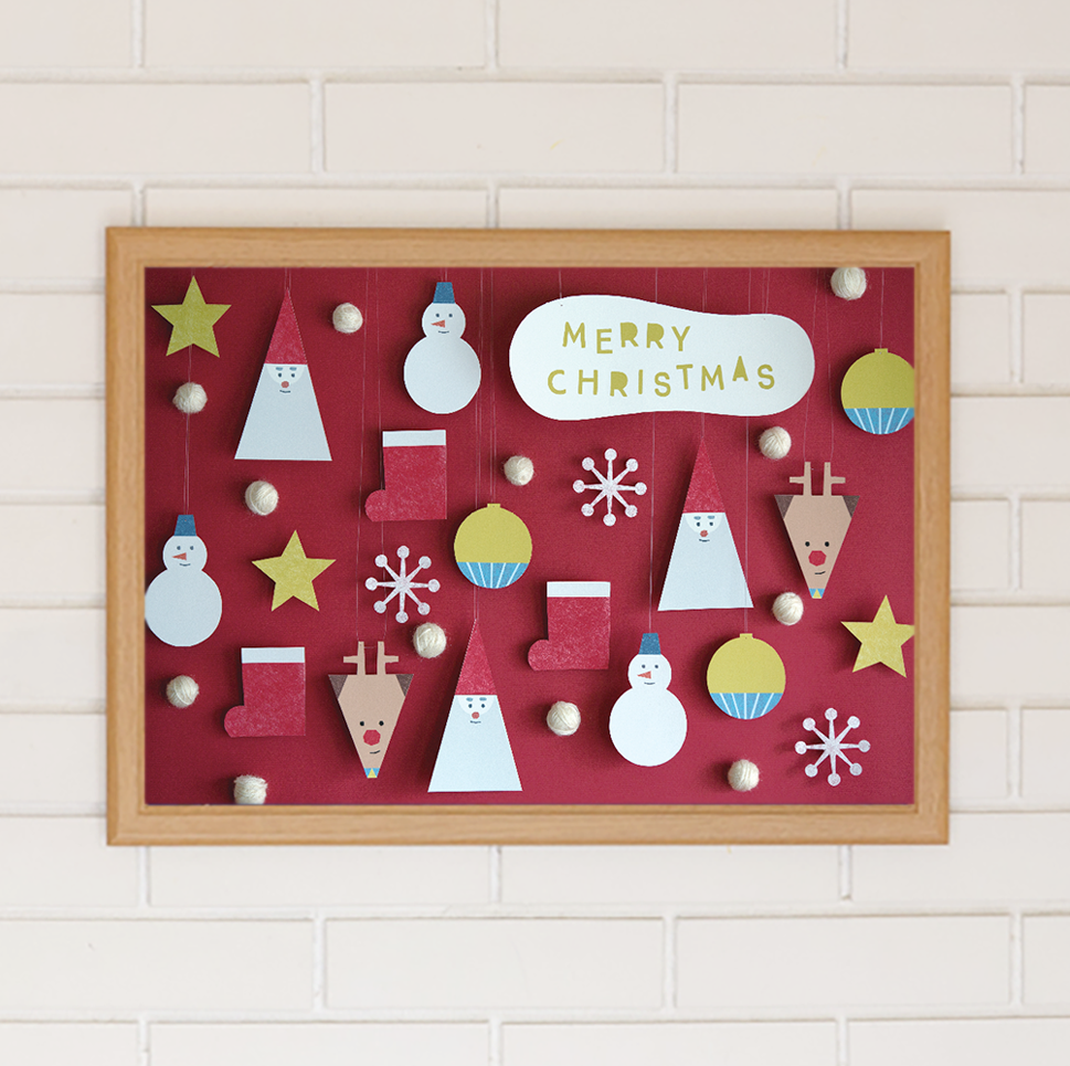 型紙と色画用紙で作る季節の壁面飾り12月クリスマスツリー図工人。
