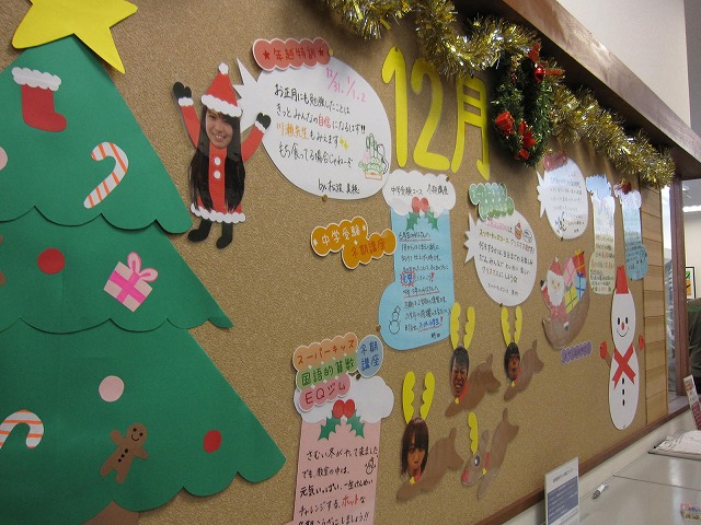 高松・丸亀の 幼児教室・学習塾 :クリスマスの掲示になりました。
