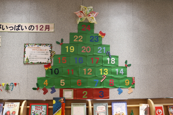 クリスマスのかざりをつくろう!」 本館児童参加型掲示- 三島市立図書館。