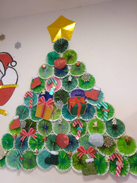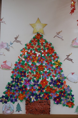 12月手作りクリスマスツリー デイサービス– 社会福祉法人 同仁会。