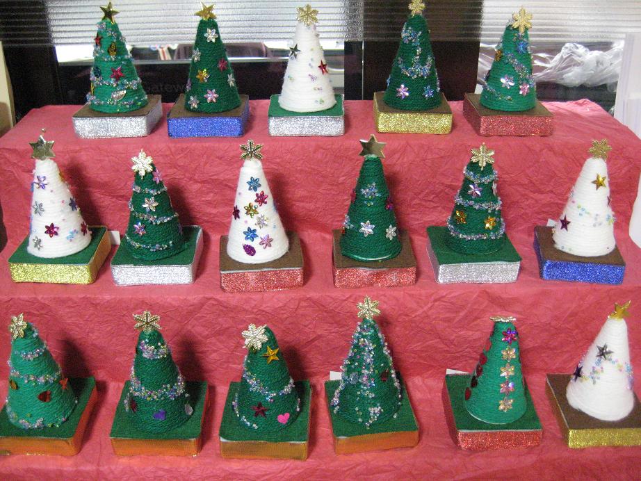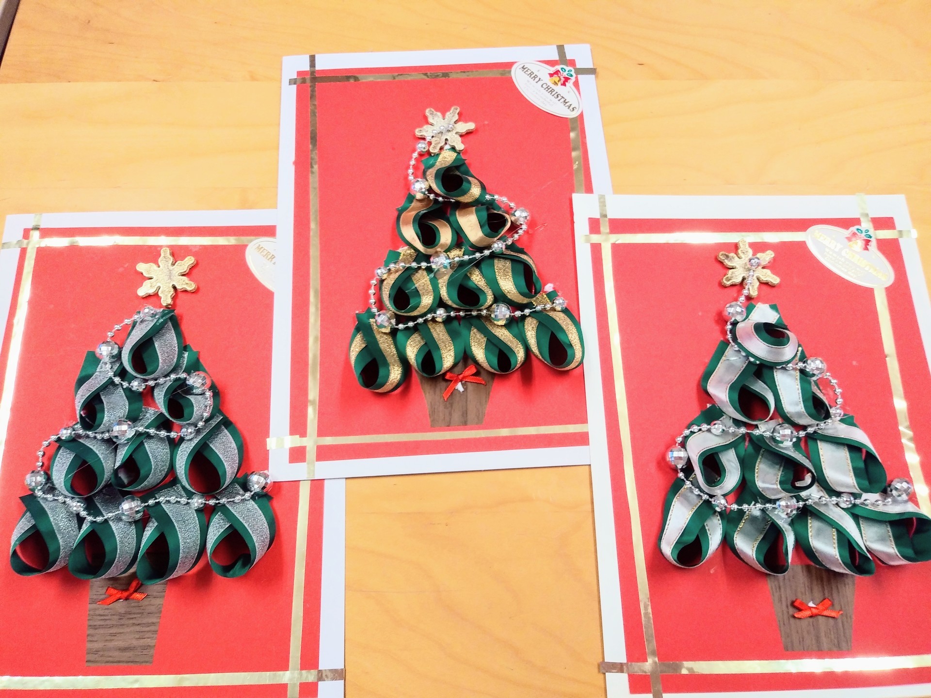 デイサービスの創作レク リボンのクリスマスツリー: 手作り TOY BOX。