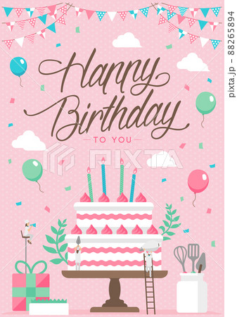 Happy Birthday ハッピーバースデー 縦長ポストカードテンプレートイラストのイラスト素材88265894- PIXTA。