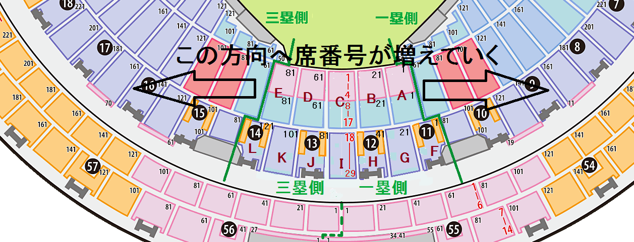 東京ドームの座席表とバルコニー席 注釈付き指定席 ステサイからの見え方Rizz。