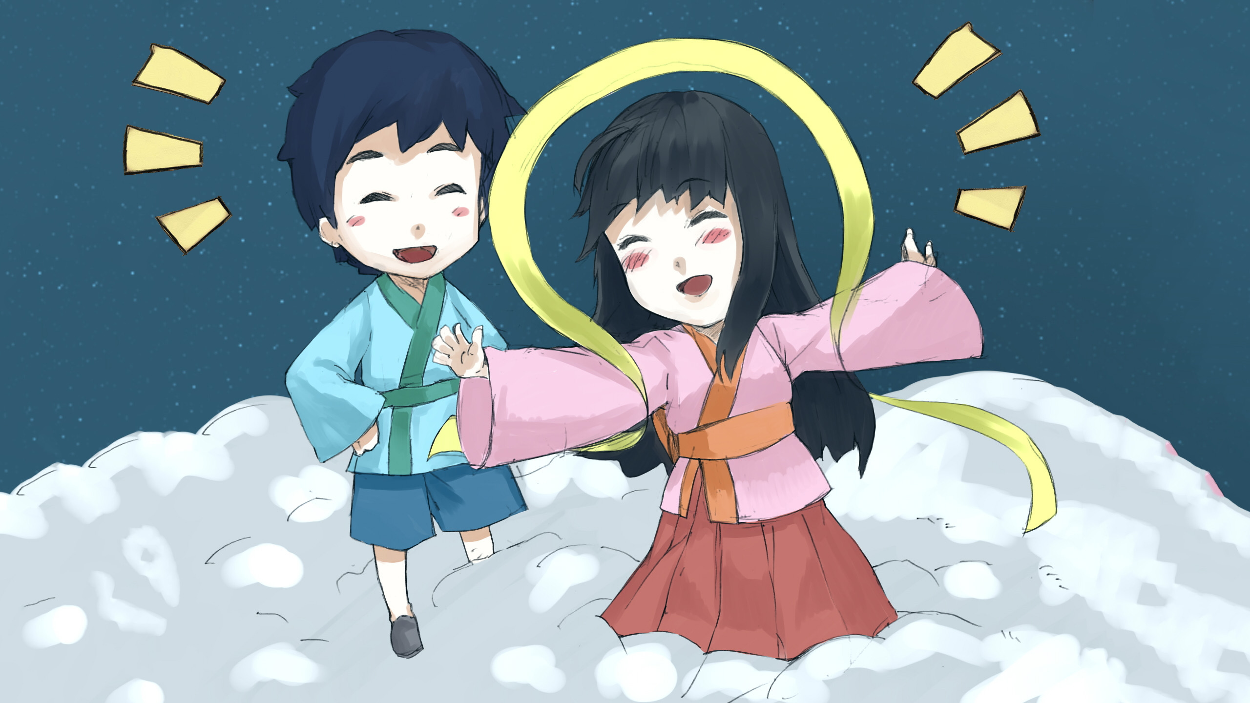 『七夕物語』 中国の昔話仕事をしないため、怒った神様が織姫と彦星を別れ離れに。 2K HD 福娘童話集アニメ紙芝居。